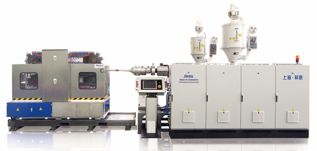 Shanghai Jwell Pipe Equipment CO.,LTD developed the new ventilation system pipe production line which has high centering precision for front and back and developed specific mould structure for the material characteristics of ventilation system pipe. The special water jacket is more adaptable to ventilation system corrugated pipe series. The forming machine adopts the new type vertical chiller, that the positioning of die mould becomes more accurate, and easy to change, which could be more convenience for customer to handle.