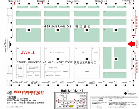 Chinaplas 2011(The 25th International Exhibition on Plastics and Rubber Industries) will be hold in Pazhou Complex ofGuangzhou city, South of China from May 17 to 20.This time our company Shanghai Jwell Extrusion machinery co., Ltd will carry kinds of machinery and equipments to show in the exhibition, such as: horizontal double-wall corrugated pipe forming machine, 1600mm vacuum tank, plastic extruder, glaze tile forming machine, blow molding machine, three-roller calender system, T-die, roller, crusher, recycling machine, screw and barrel etc. We have two big booths which are located in Hall 1.1 booth number D21 and Hall 5.1 booth number M41.Welcome to our Booth.
